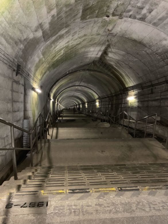 では、早速土合駅の中へ入ってみましょう!改札までの道のりを撮影しましたが……し、下が見えない……!!最近運動していなかったので、大丈夫かな最後までたどり着けるか……と、どきどきしながら覚悟して降り始めました。